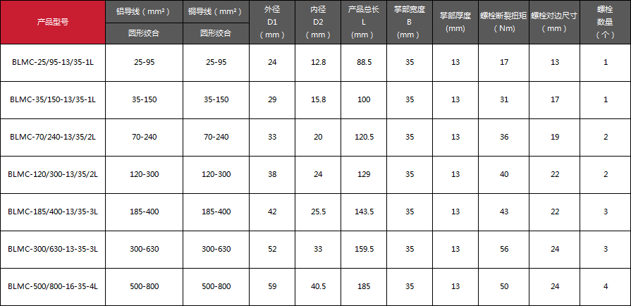 | BLMC-95/240 | 95-240 | 2 | 13 | 16.3 | 107.5 | 61.5 | 20 | 34.5 |